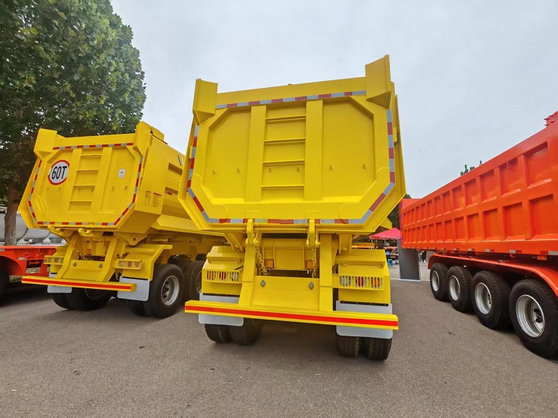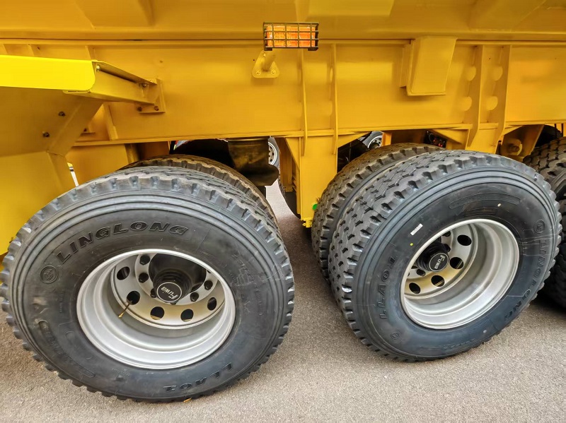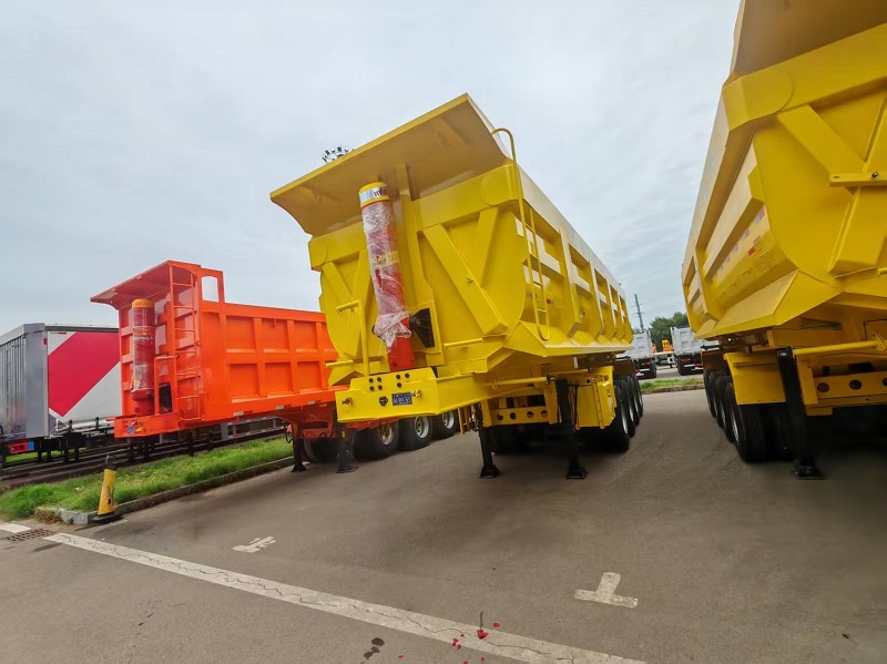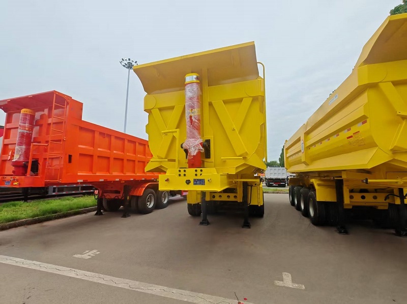 The dump semi trailer uses a hydraulic system to drive the carriage to achieve autonomous unloading, mainly including two operating modes: side rollover and rear rollover.