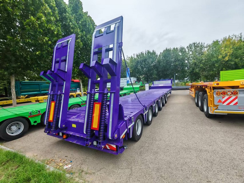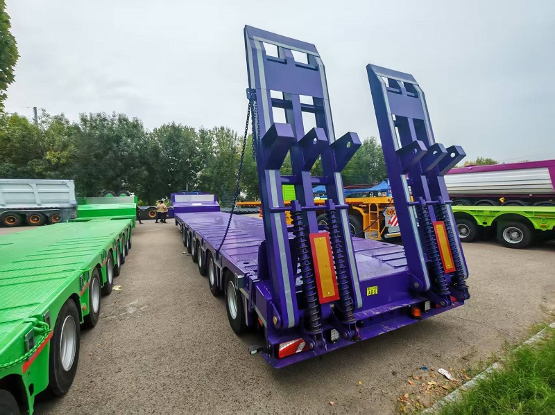 The 6 axles 100 tons low-bed semi trailer is a heavy duty trailer designed and manufactured by BLAZERS company, which is mainly used for transporting the construction machines, like excavators, wheel loaders and road rollers.