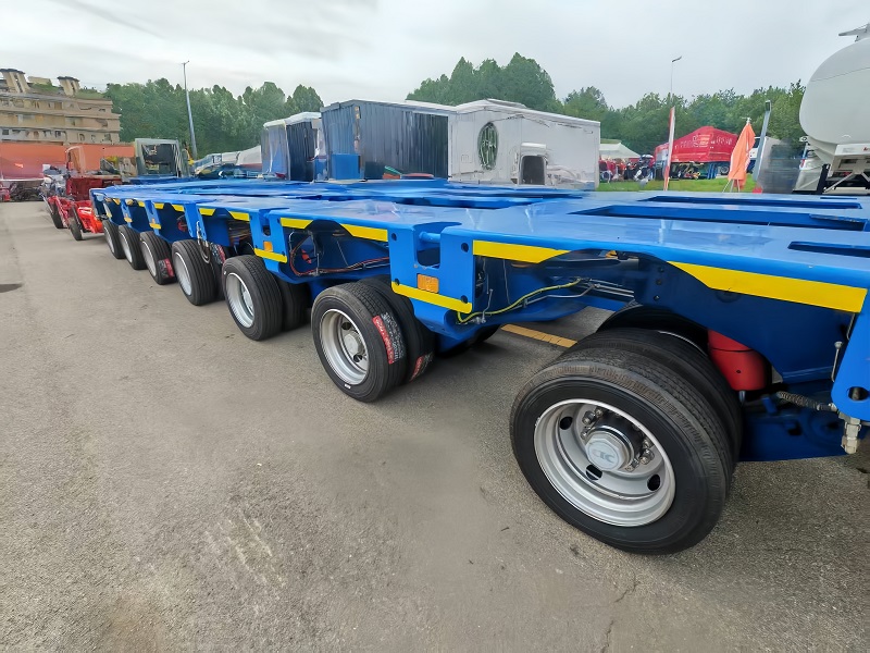 Lower and fix the rear ramps. Guide heavy machinery (excavators, loaders) to drive onto the platform slowly from the rear. Secure the equipment with steel cables and anti-slip blocks.