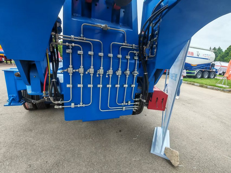 Park the trailer steadily, lower and level the outriggers. Disconnect hydraulic pipelines, pull out connecting pins, unlock buckles, and move the gooseneck away with a tractor or forklift.