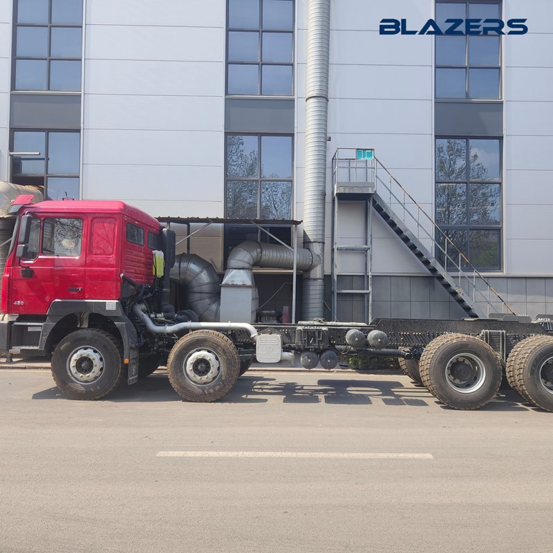 This SHACMAN F3000 8×4 Tipper Chassis Frame with 430HP is specially developed for mining tipper applications on steep slopes, muddy and slippery roads. It adopts a reinforced heavy-duty frame, high-power engine, durable suspension and reliable braking system to meet long-term heavy-load operation in harsh mining environments. The bright red finish provides high visibility and strong anti-corrosion performance. It is the ideal chassis for mining dump trucks, ore transportation and earthmoving projects.