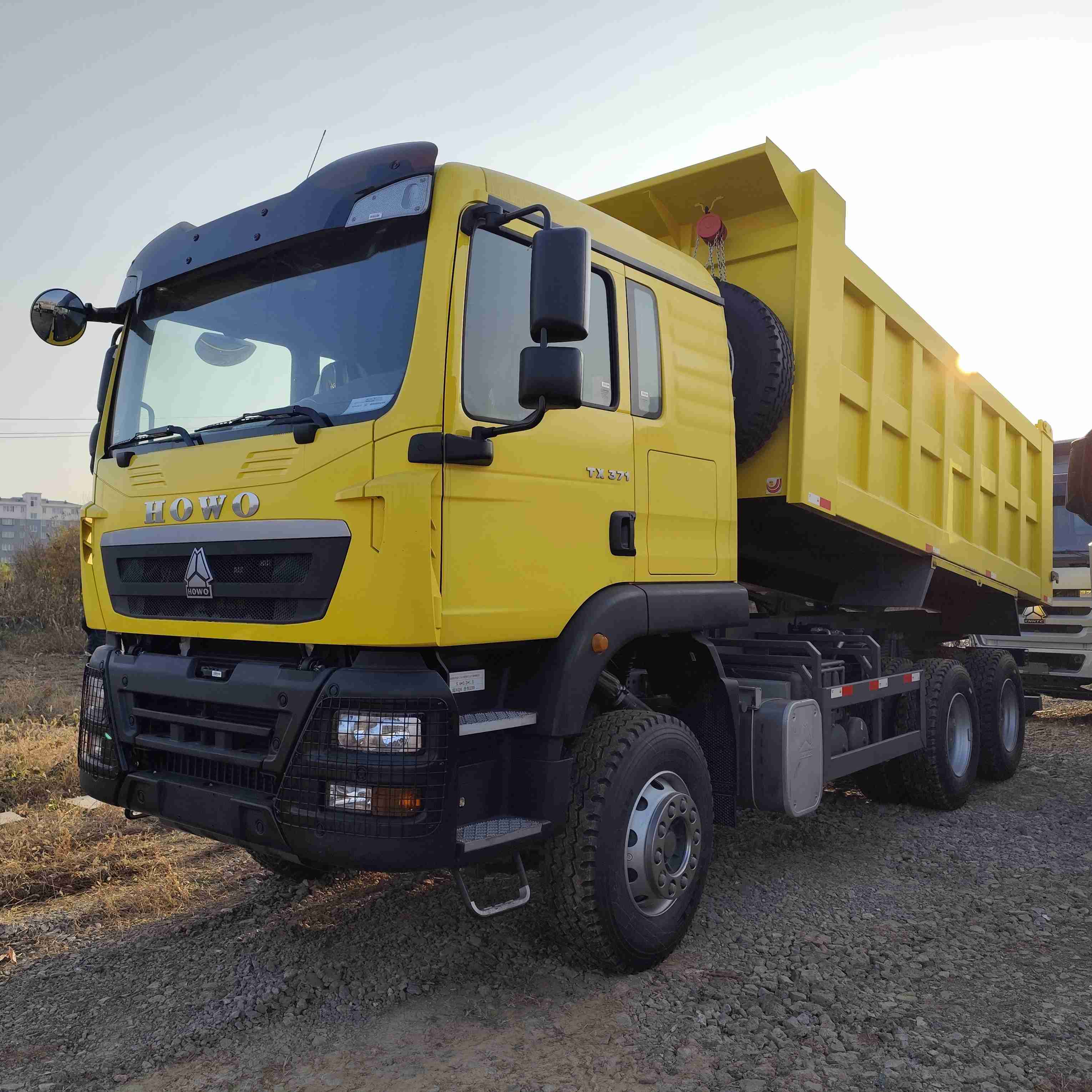 The HOWO TX 371HP 25 CBM Yellow Dump Truck is a heavy-duty tipper professionally built for Algeria’s construction, mining and infrastructure sectors. Featuring a bright yellow body for high visibility, a powerful 371HP powertrain and robust 6×4 chassis, it delivers reliable performance and high load efficiency under Algeria’s desert and mountain road conditions, making it the ideal choice for bulk material transport.